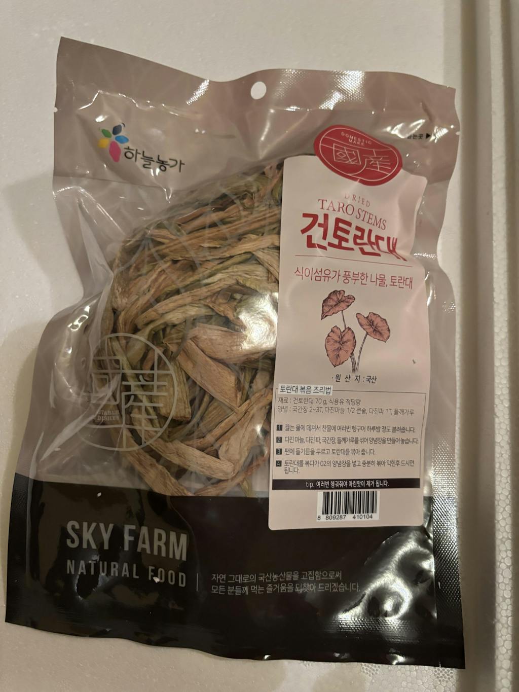 신선한 국내산 토란대를 위생적으로 건조하여 일체의 첨가물 없이 깨끗하게 담았으니 안심하고 드세요.