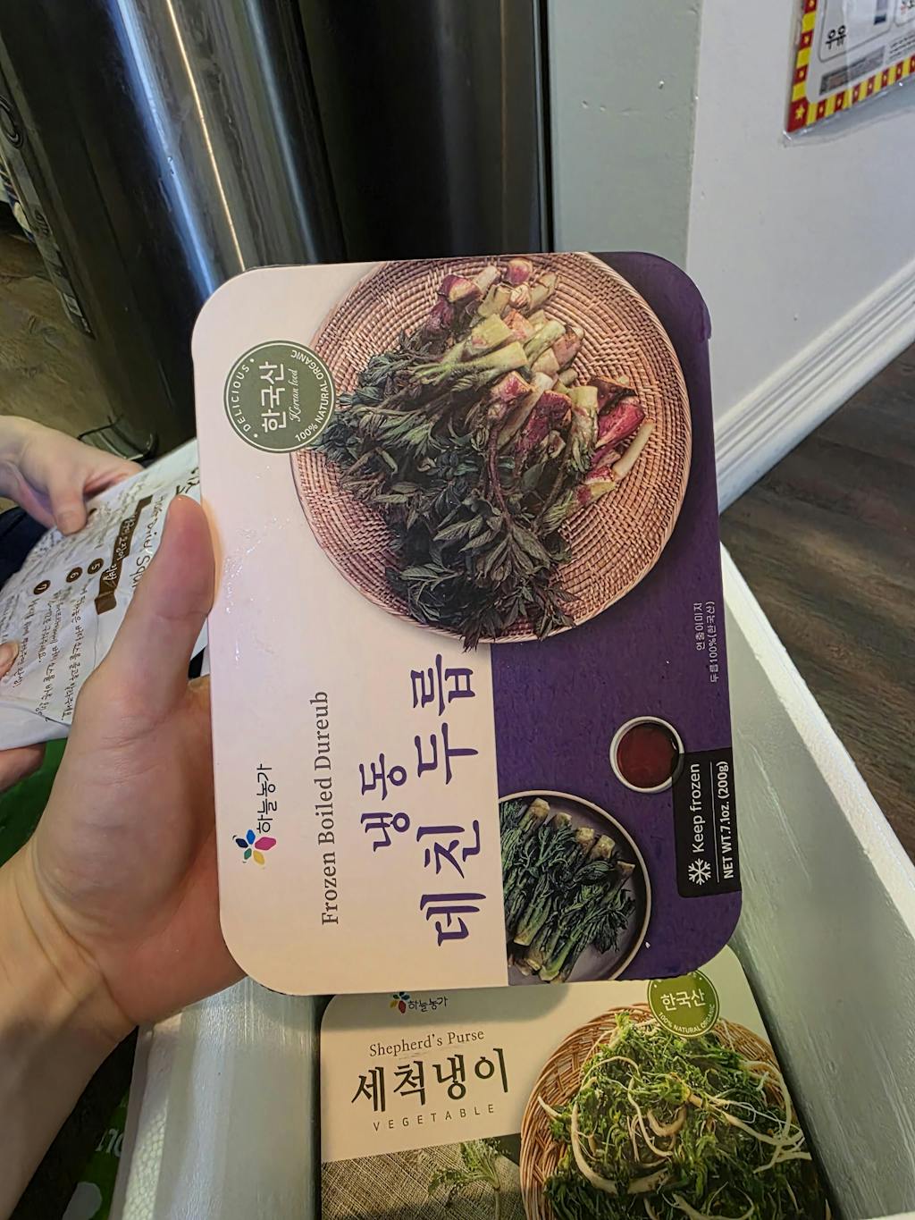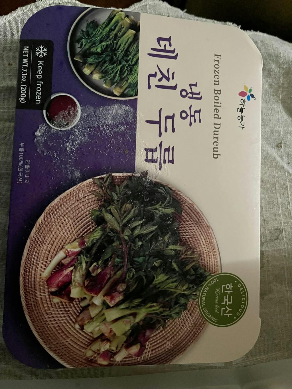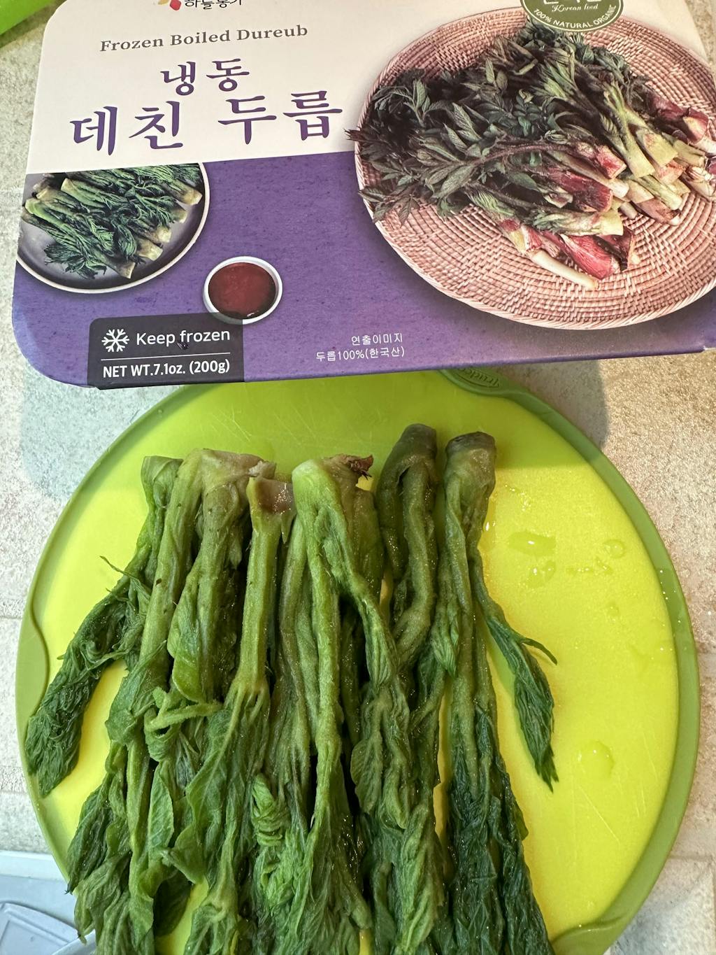 신선한 국내산 생두릅을 데친 후 위생적으로 냉동하여 일체의 첨가물 없이 깨끗하게 담았으니 안심하고 드세요.