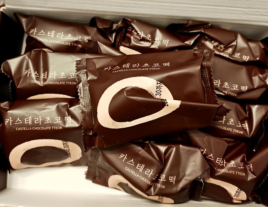 포실포실 쫄깃한 초코 카스테라 찹쌀떡 속에 진한 생초코렛 앙금이 가득하며 과하게 달지 않은 프리미엄 초코떡입니다.