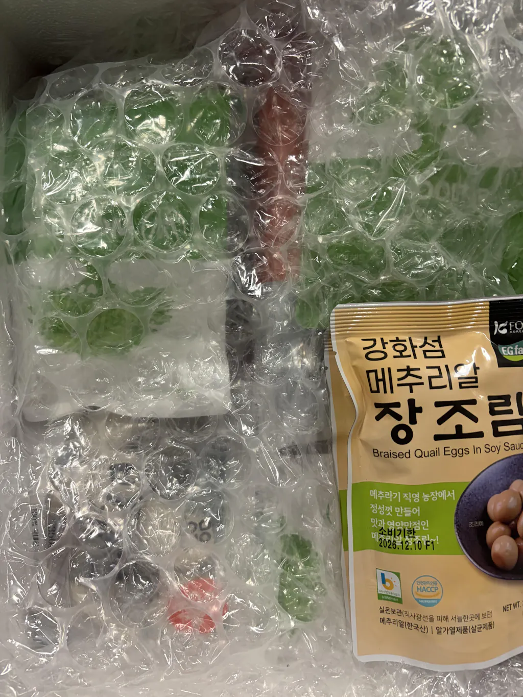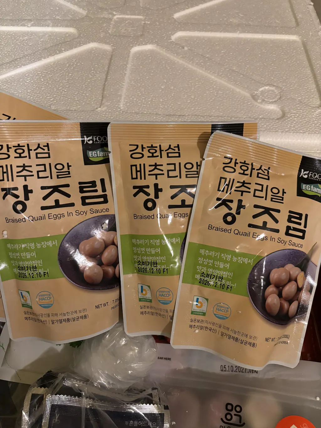 강화섬의 신선한 메추리알로 만든 장조림, 200g 패키지. 이 제품은 강화섬 지역 농장에서 정성스럽게 재배된 메추리알을 사용하여 만들어졌습니다. 간장 소스에 절여진 메추리알은 부드럽고 풍부한 맛을 자랑합니다. 간편하게 즐길 수 있는 반찬으로, 밥과 함께 먹으면 더욱 맛있습니다.